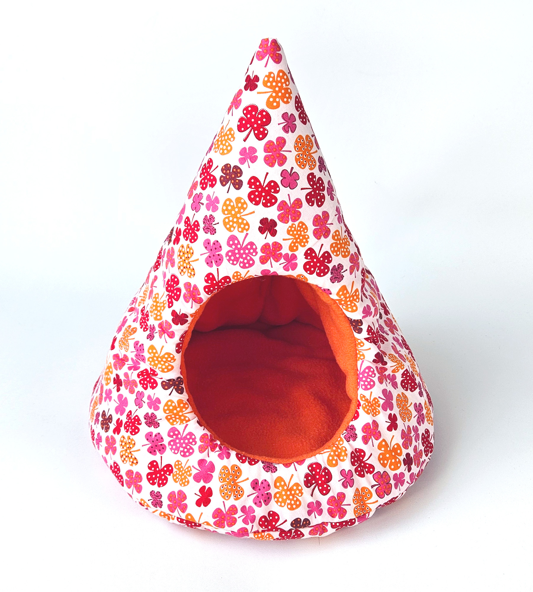 Kuscheltipi / Kuschelhöhle für Meerschweinchen - Kleeblätter/orange